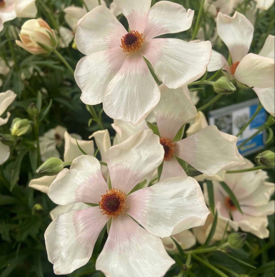 The blooms arrive in productive sprays of five to seven flowers per branching stem, making them superb for adding height, texture, and movement while the traditional Ranunculus provides lush volume.